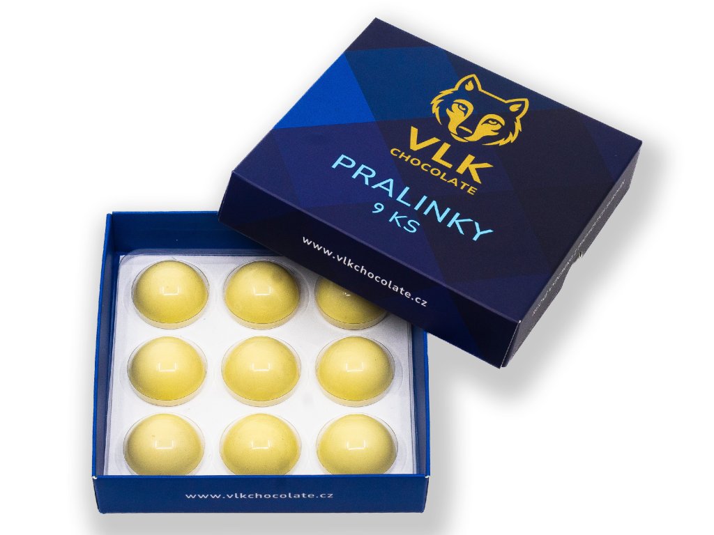 Pralinky jsou uloženy v elegantní dárkové krabičce VLK CHOCOLATE — skvělá volba pro milovníky kokosu i jako dárková sada jednoho druhu.