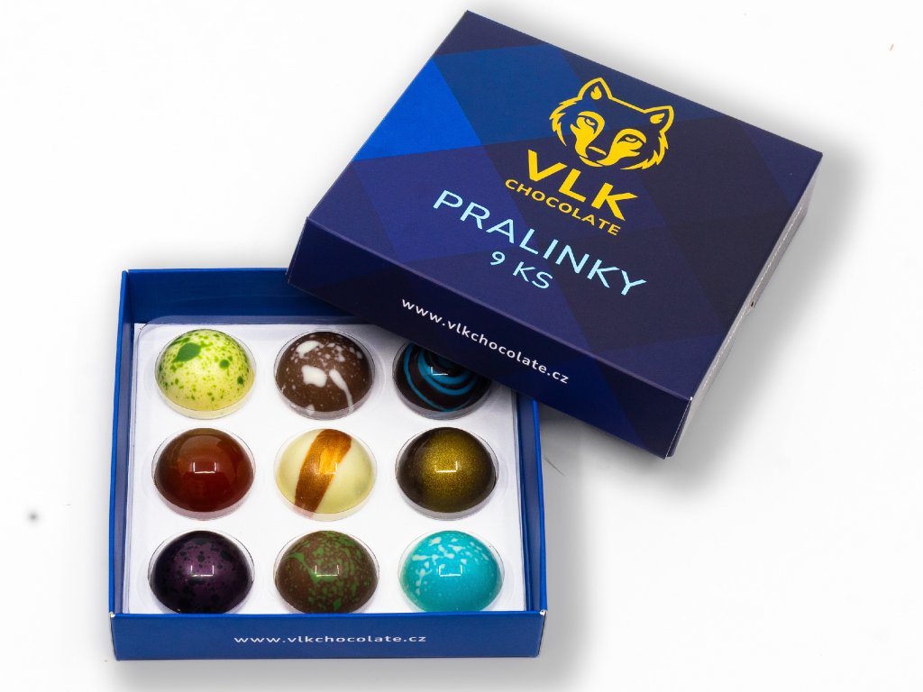 Vše je uloženo v elegantní dárkové krabičce VLK CHOCOLATE, která z kolekce dělá ideální volbu pro ochutnávku celé nabídky nebo jako univerzální dárek.